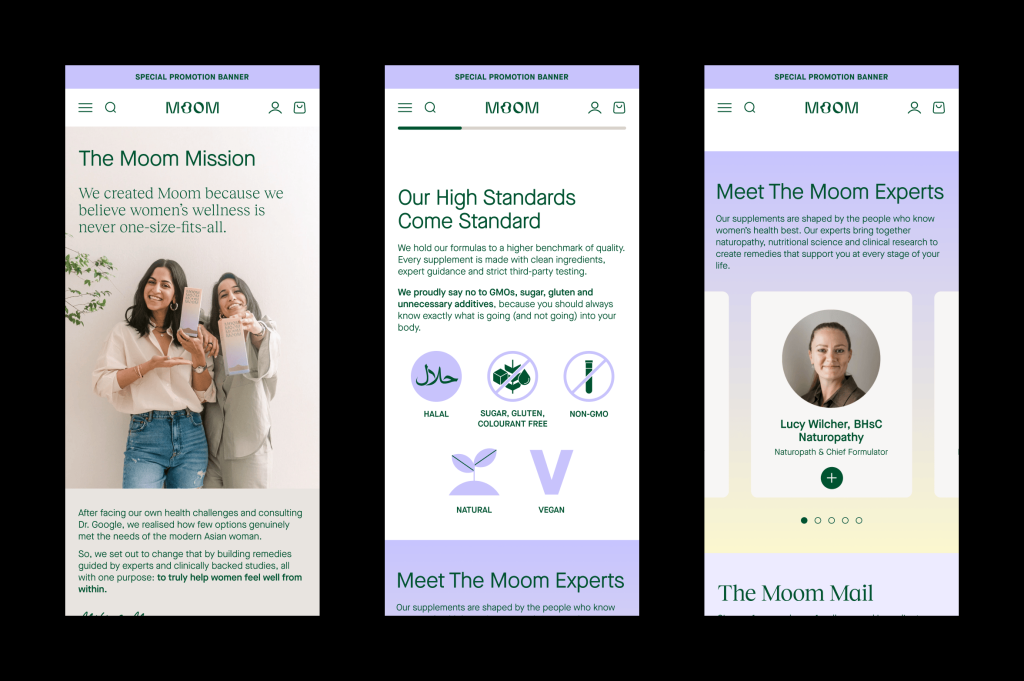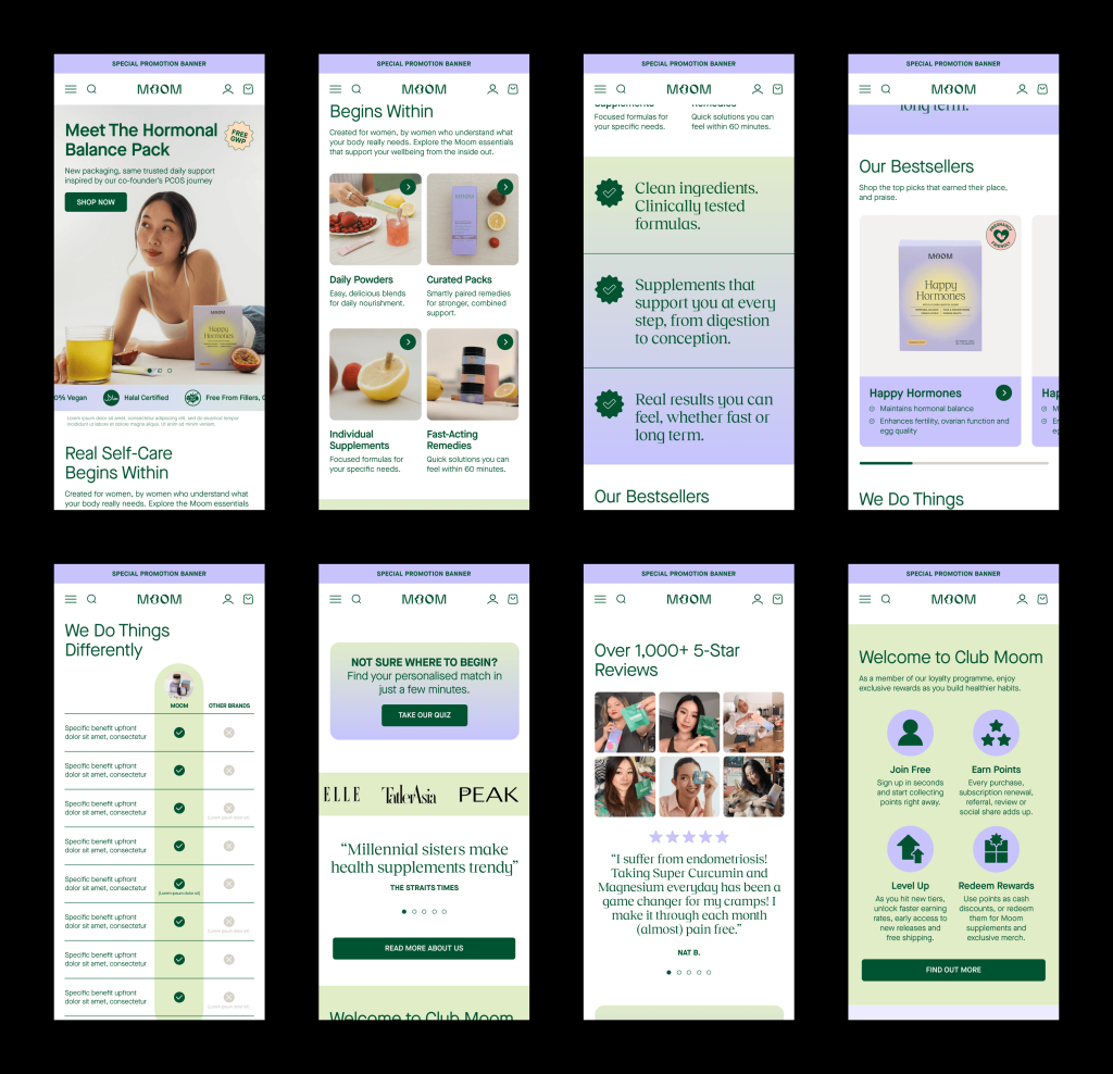 “I designed and developed a modern e-commerce website for a health supplement brand, focusing on clarity, trust, and conversion. The visual language balances scientific credibility with a clean, wellness-driven aesthetic, while the UX prioritizes easy product discovery, transparent ingredient information, and a frictionless purchase flow. From brand expression to performance optimization, the project explores how digital design can communicate health, reliability, and lifestyle in a cohesive online experience.”